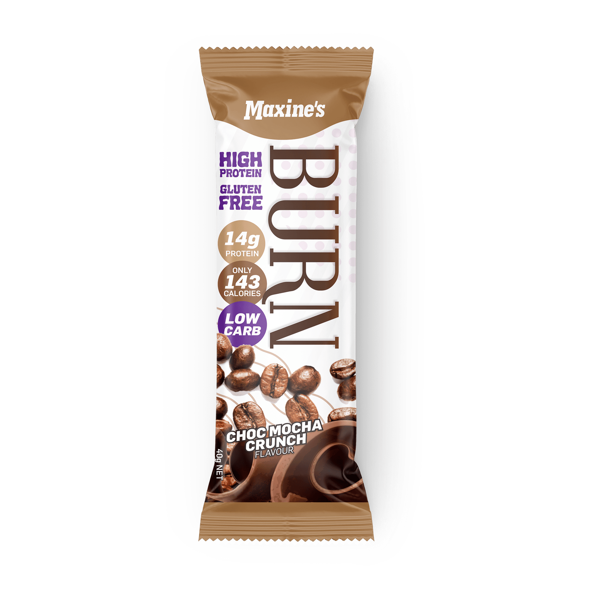 Maxine’s BURN bars are a delicious and convenient way to get great nutrition on the run. They are made from a special blend of high quality proteins without unwanted bad fats and simple sugars. This high protein formula stimulates your metabolism to produce heat, which is known a Thermogenesis. When combined with powerful carb blockers and fat metabolisers, Maxine’s BURN bars are a great snack to help you get in shape and stay that way.